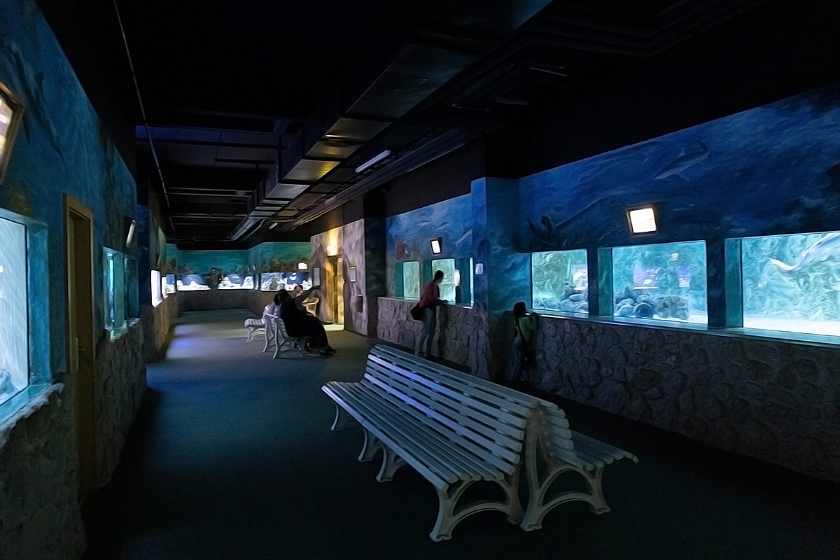 Auf dem Weg zu den Haien erlebt der Besucher in Dutzenden Meerwasseraquarien die Lebewelt der Ozeane, bestaunt Korallenriffe mit der typischen bunten Unterseefauna aus farbenfrohen Fischen, Schalentieren, beweglichen und starren Seeorganismen. Man kann „Nemo“ (Clownfisch) und Seepferdchen bewundern und die Szenerie eines Schiffswracks erkunden.